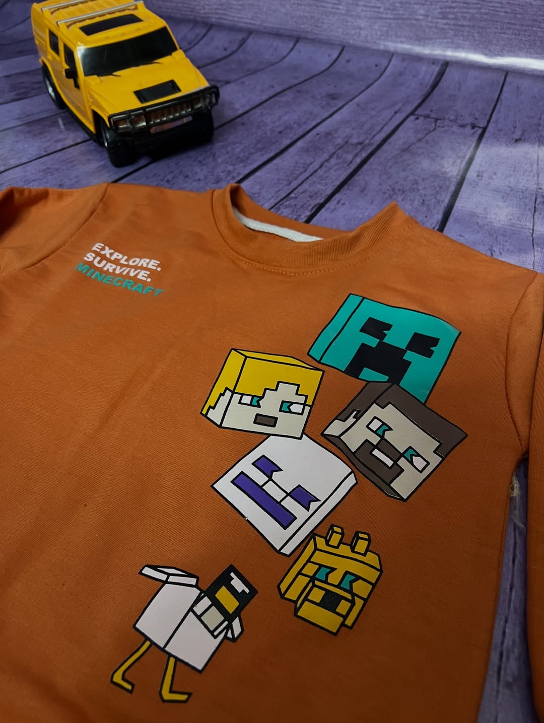 بلوز اسپرت پسرانه چاپ ماینکرفت سایز ۴۵ / ۵۰ / ۵۵ / ۶۰