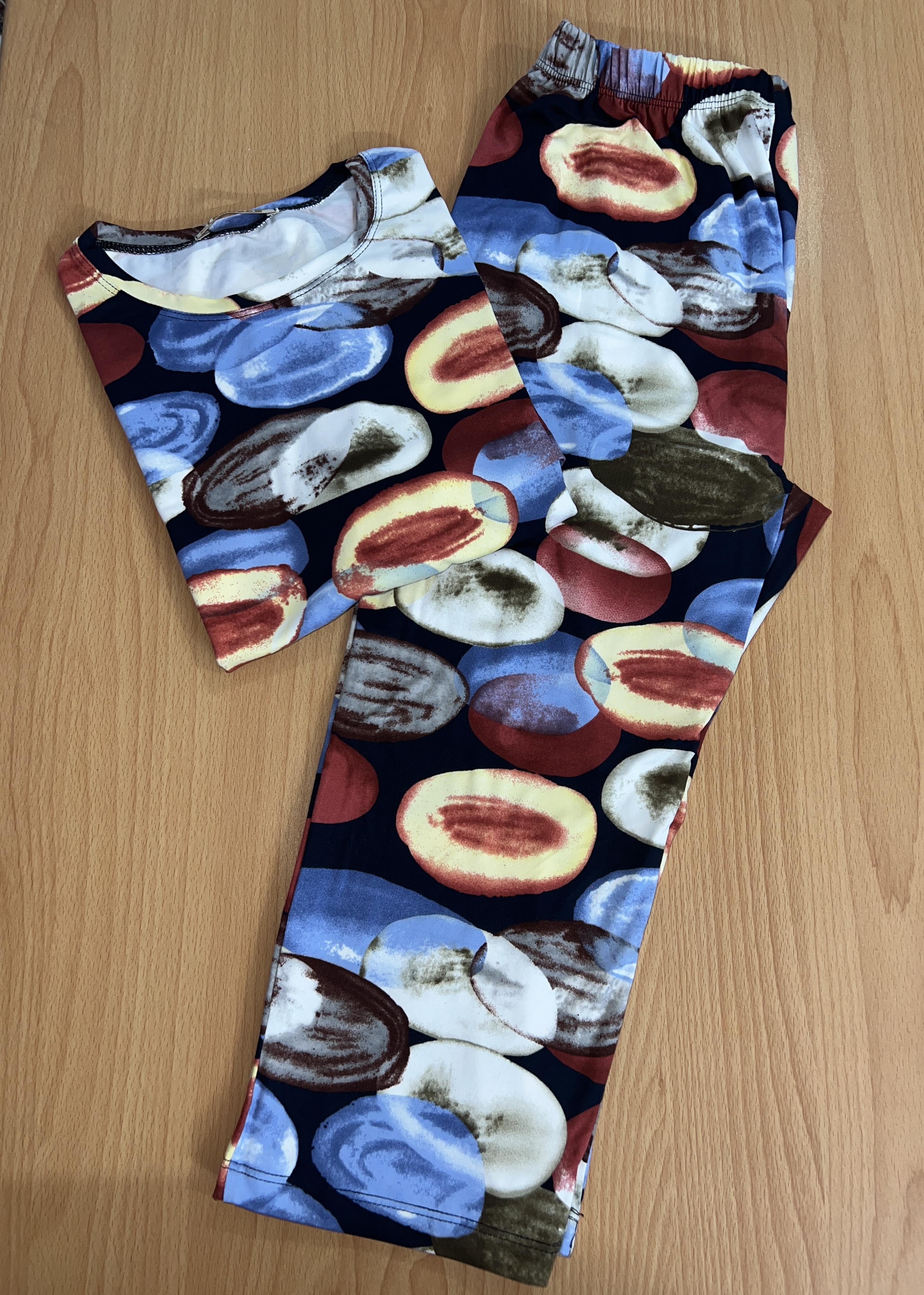 تيشرت و شلوارك گیاهی جنس گیاهی اعلا وارداتی طرح دار فری سایز ۳۸ تا ۴۸ قد تيشرت ٦٦ دور سينه ١٠٠ بلندي آستين ٢٠ پهناي باسن ٤٥ سانت بدون كشساني قد شلوارك ٧٠ سانت
