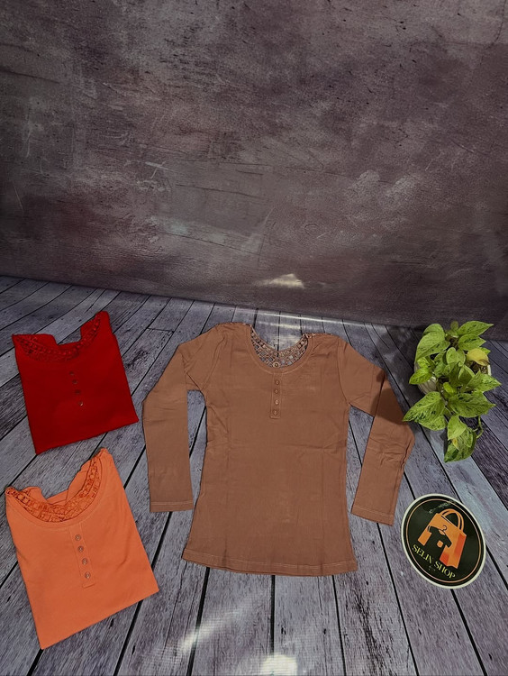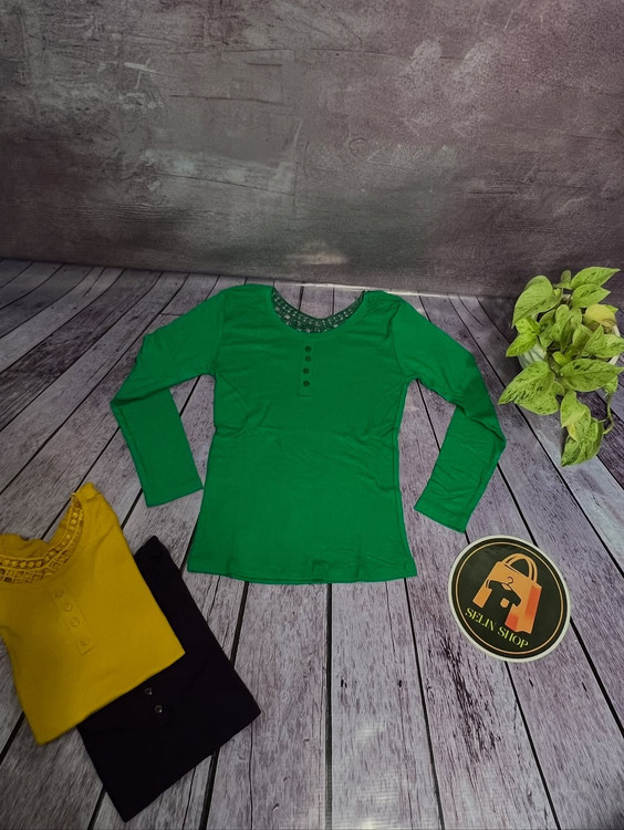 🟡 بلوز آستین بلند کبریتی پشت گیپور