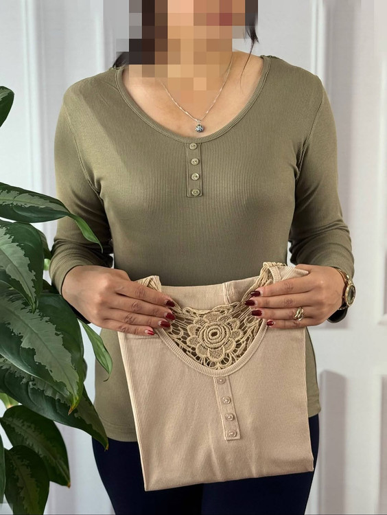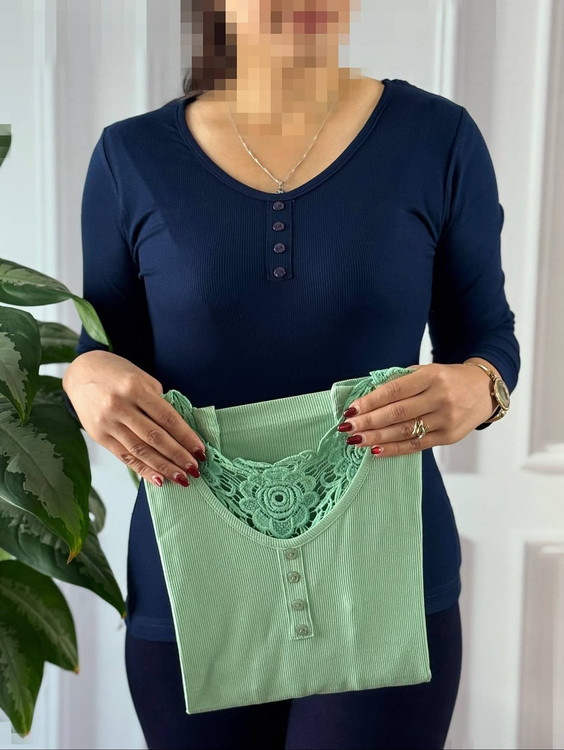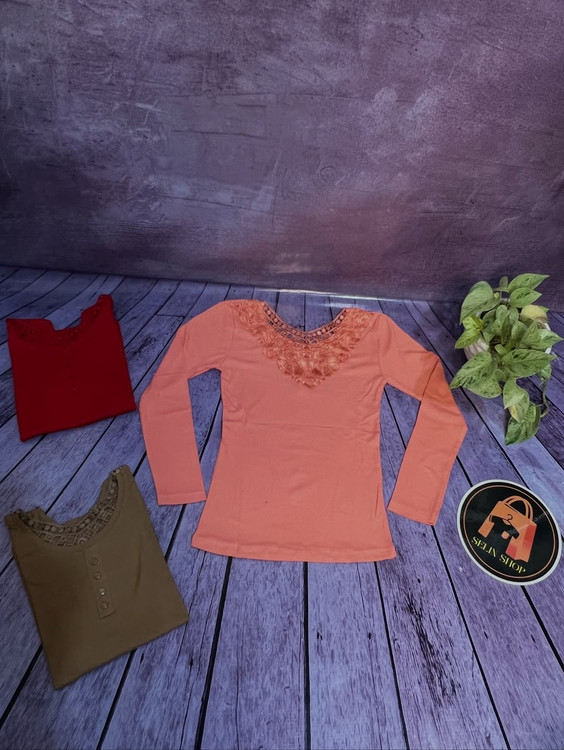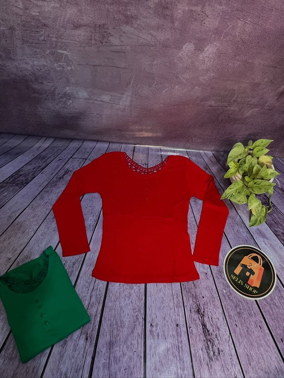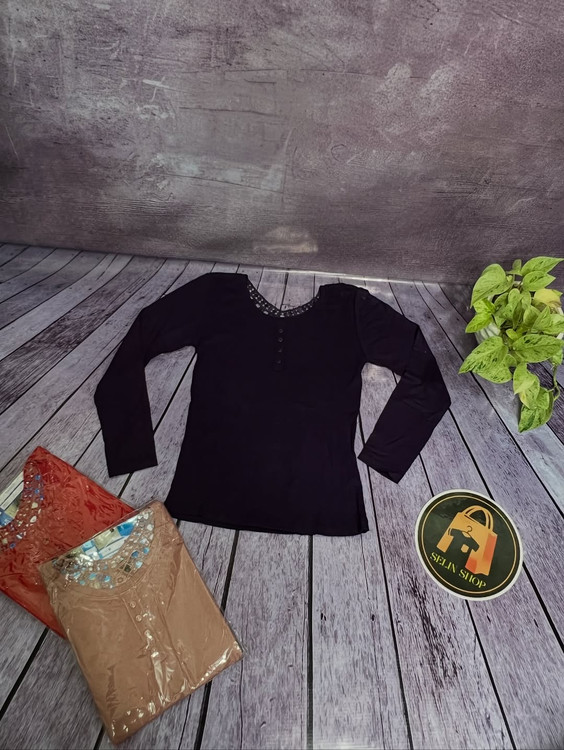 بلوز آستین بلند کبریتی پشت گیپور فری سایز ۴۶